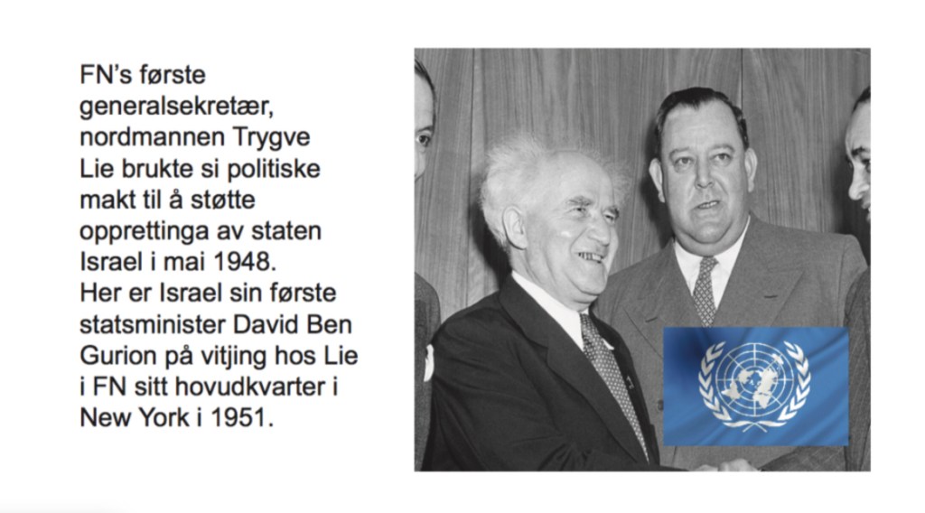 September 16, 2024September 28, 2024 ivarfjeld Norske Trygve Lie spilte en sentral rollle i staten Israels opprettelse Share this: Share on X (Opens in new window) X Share on Facebook (Opens in new window) Facebook Like Loading... Related